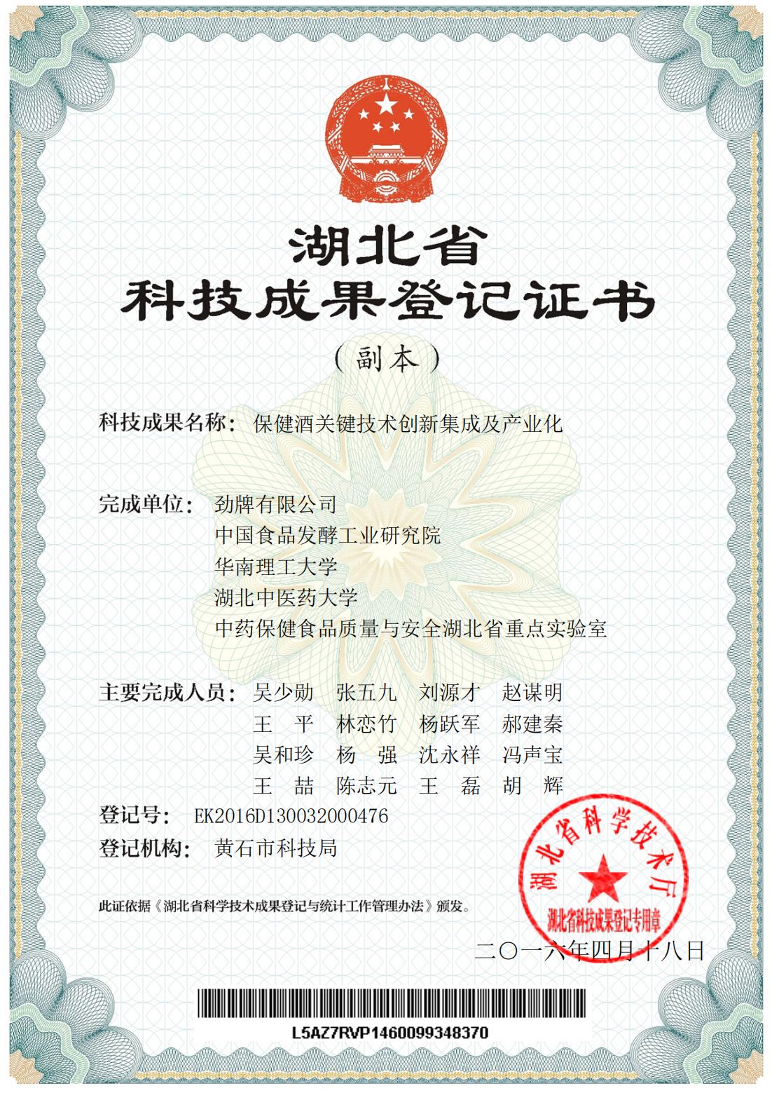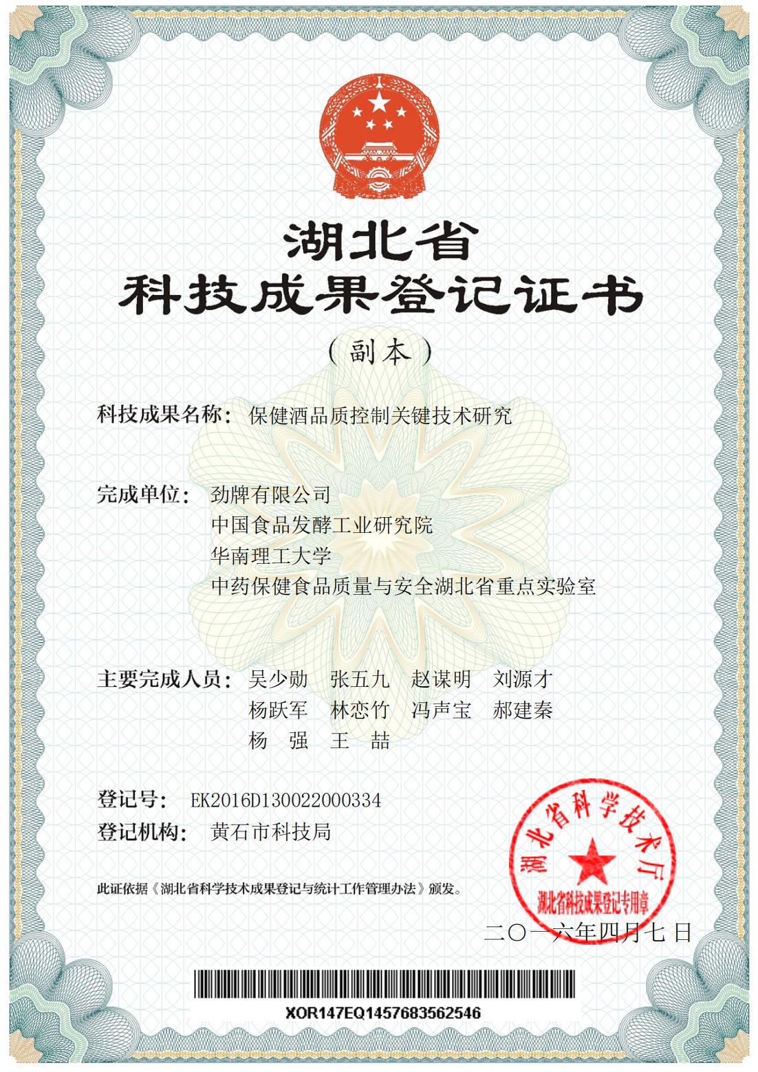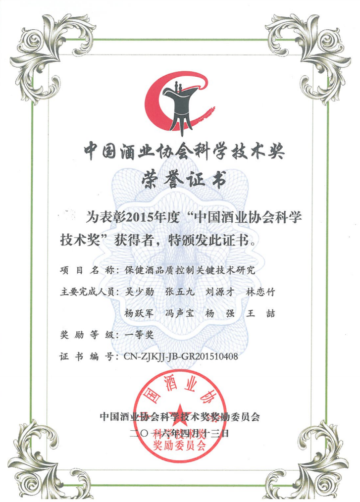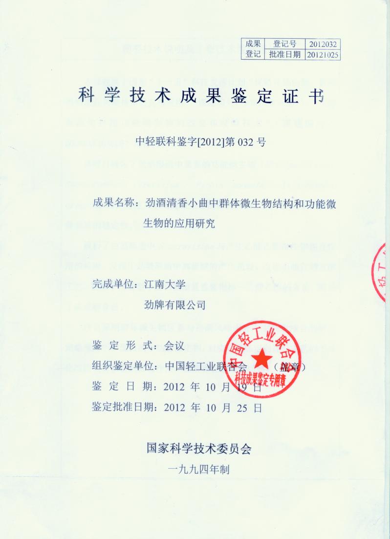 近年來(lái),公司圍繞保健酒、草本白酒和中草藥新產(chǎn)品研發(fā)、產(chǎn)品改進(jìn)和基礎(chǔ)應(yīng)用技術(shù),在中藥數(shù)字化提取、小曲酒釀造新工藝、中藥指紋圖譜等核心技術(shù)方面擁有自主知識(shí)產(chǎn)權(quán),通過(guò)行業(yè)協(xié)會(huì)等鑒定機(jī)構(gòu)技術(shù)評(píng)估22項(xiàng),其中15項(xiàng)成果鑒定為“國(guó)際領(lǐng)先”水平,7項(xiàng)成果鑒定為“國(guó)際先進(jìn)”水平。