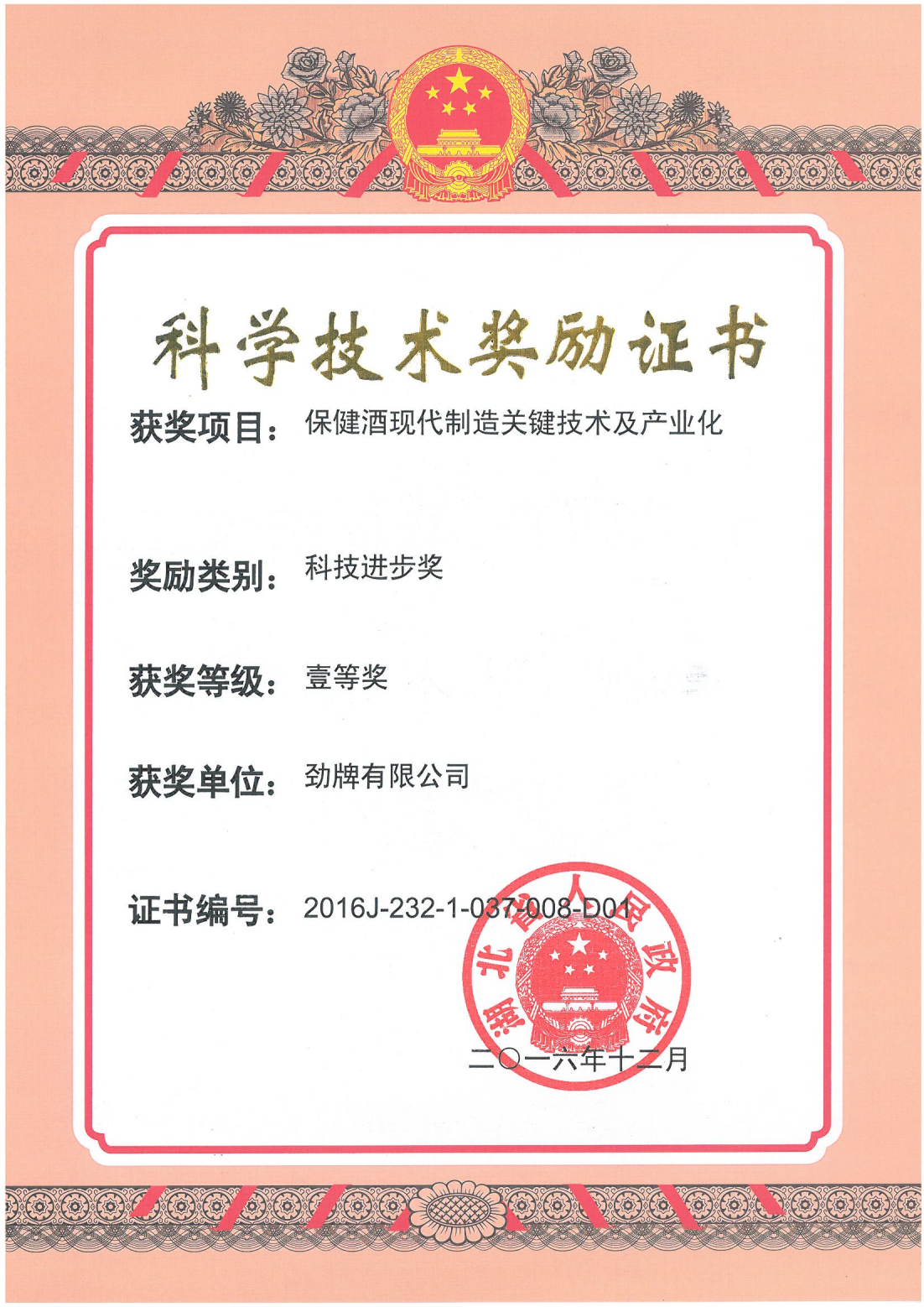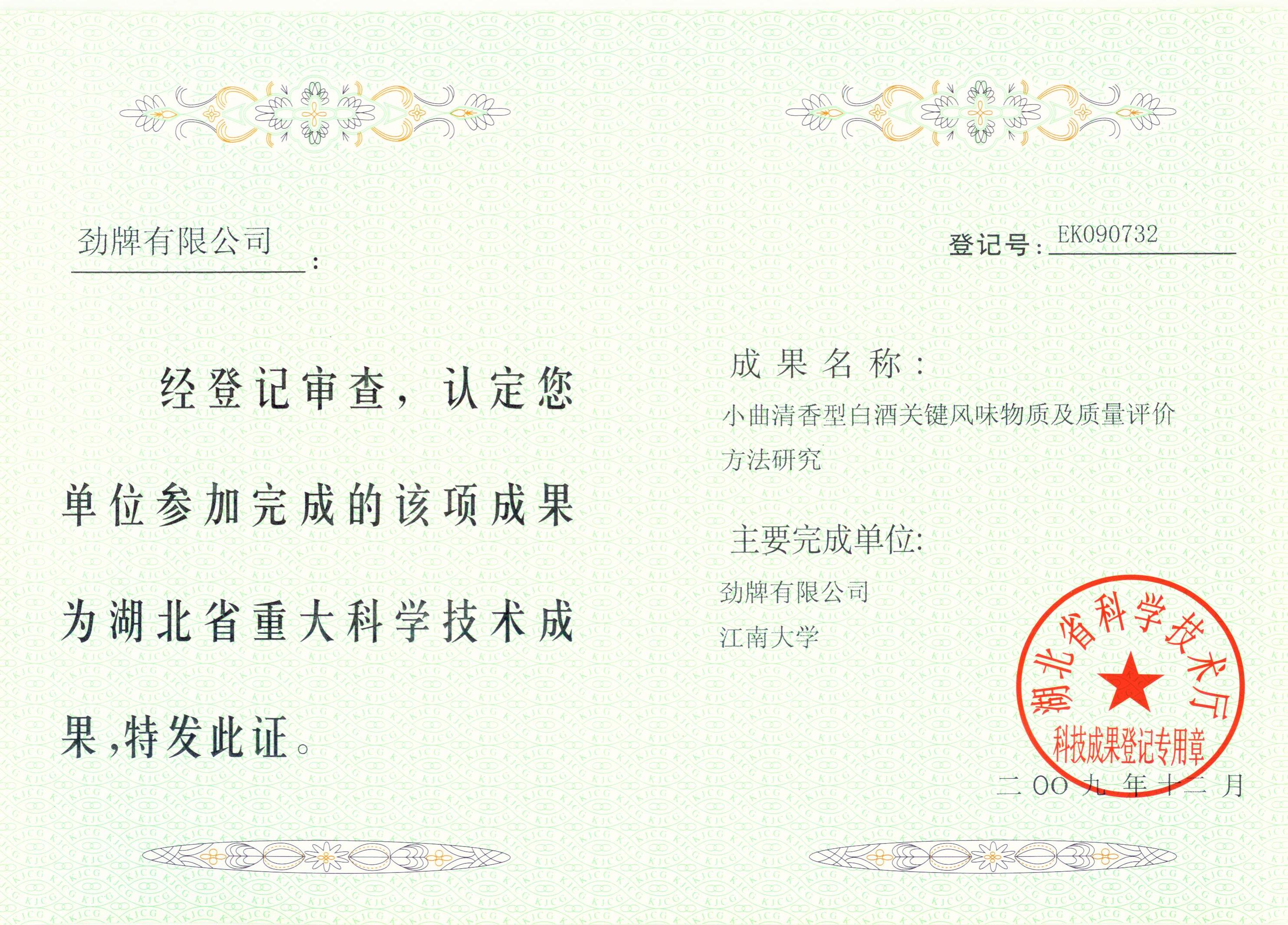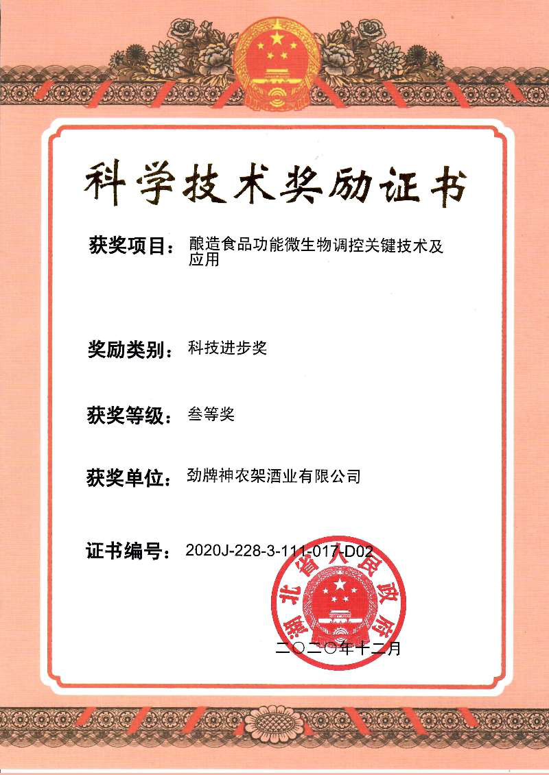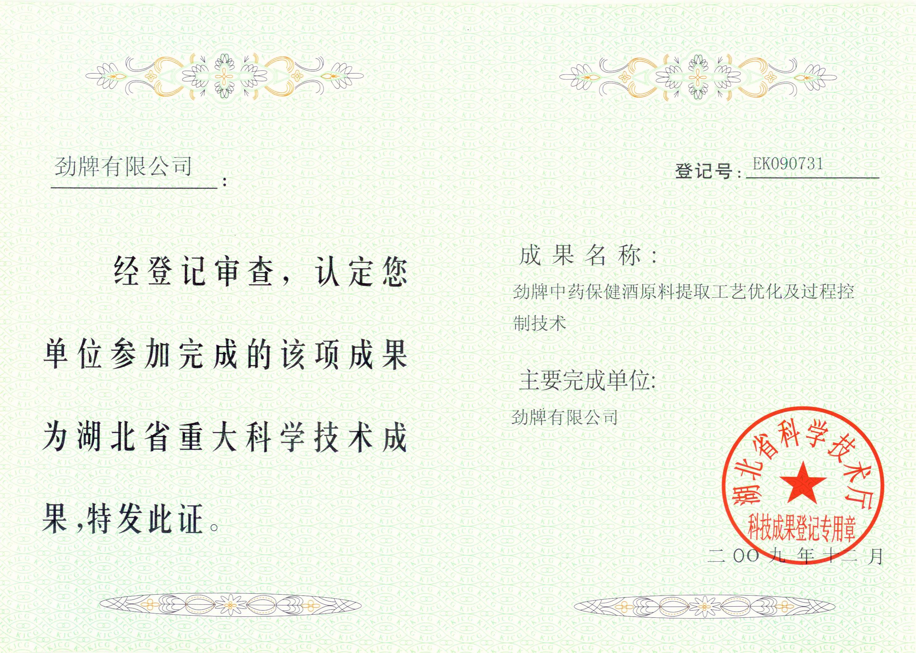 近年來(lái),公司圍繞保健酒、草本白酒和中草藥新產(chǎn)品研發(fā)、產(chǎn)品改進(jìn)和基礎(chǔ)應(yīng)用技術(shù),在中藥數(shù)字化提取、小曲酒釀造新工藝、中藥指紋圖譜等核心技術(shù)方面擁有自主知識(shí)產(chǎn)權(quán),通過(guò)行業(yè)協(xié)會(huì)等鑒定機(jī)構(gòu)技術(shù)評(píng)估22項(xiàng),其中15項(xiàng)成果鑒定為“國(guó)際領(lǐng)先”水平,7項(xiàng)成果鑒定為“國(guó)際先進(jìn)”水平。