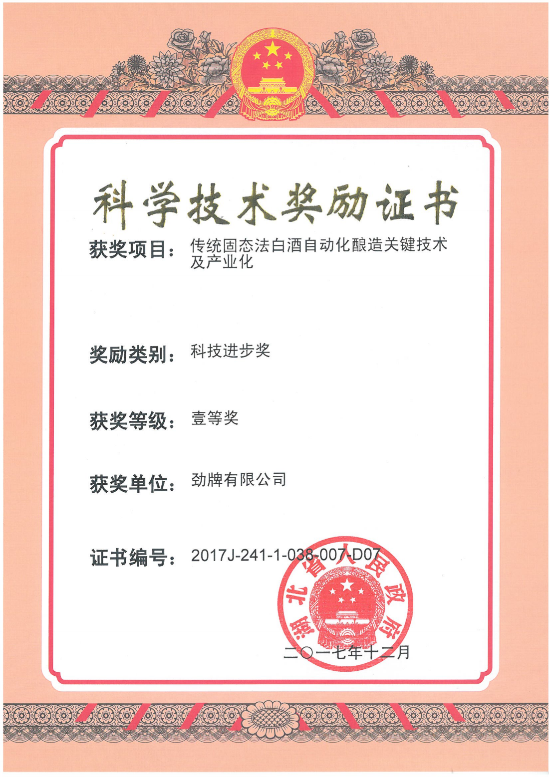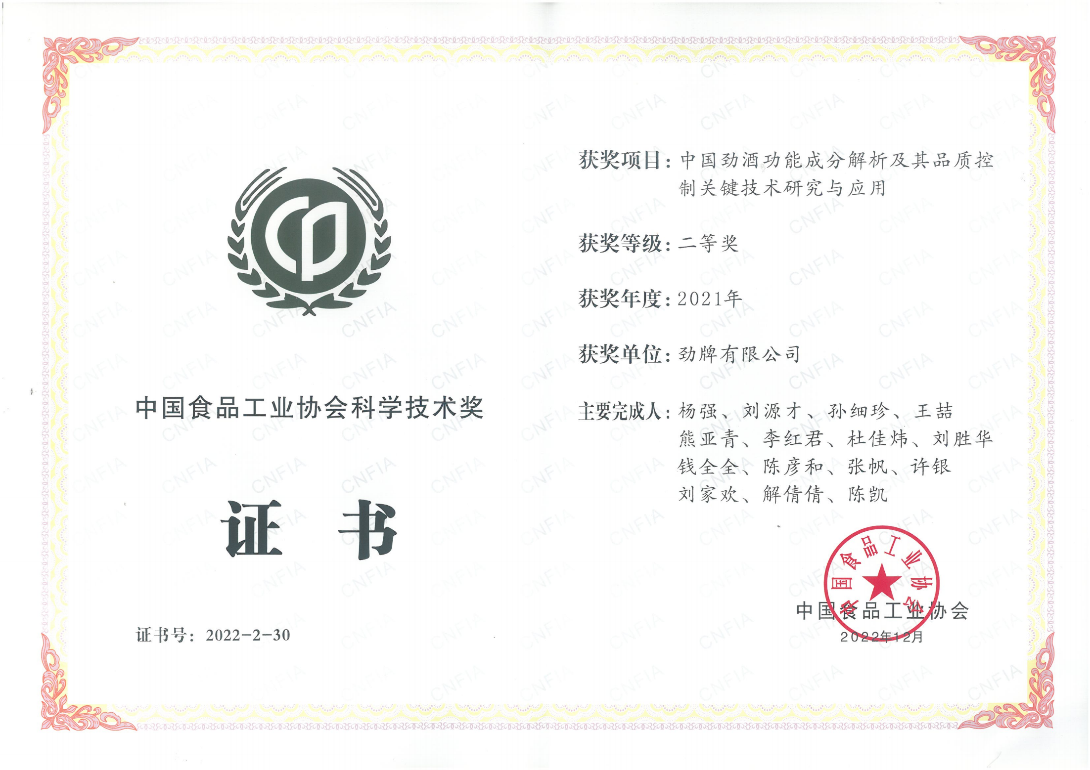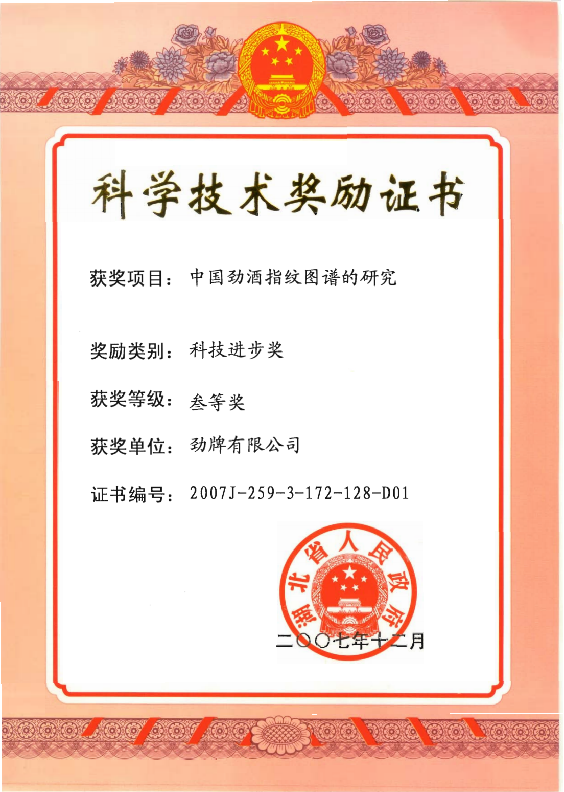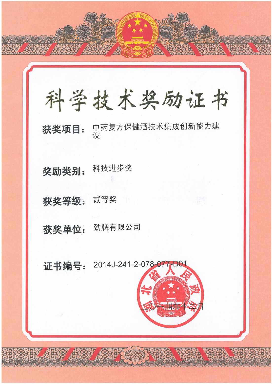 近年來(lái),公司圍繞保健酒、草本白酒和中草藥新產(chǎn)品研發(fā)、產(chǎn)品改進(jìn)和基礎(chǔ)應(yīng)用技術(shù),在中藥數(shù)字化提取、小曲酒釀造新工藝、中藥指紋圖譜等核心技術(shù)方面擁有自主知識(shí)產(chǎn)權(quán),通過(guò)行業(yè)協(xié)會(huì)等鑒定機(jī)構(gòu)技術(shù)評(píng)估22項(xiàng),其中15項(xiàng)成果鑒定為“國(guó)際領(lǐng)先”水平,7項(xiàng)成果鑒定為“國(guó)際先進(jìn)”水平。